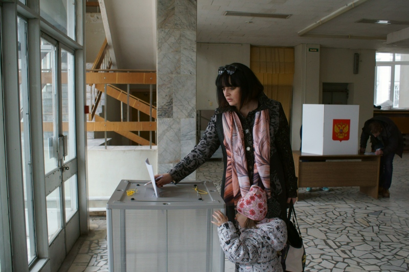 Оксана Михайловна Гарнаева – Председатель Комиссии по благотворительности, по поддержке семьи, детей и материнства пришла на голосование вместе со своими коллегами и близкими.