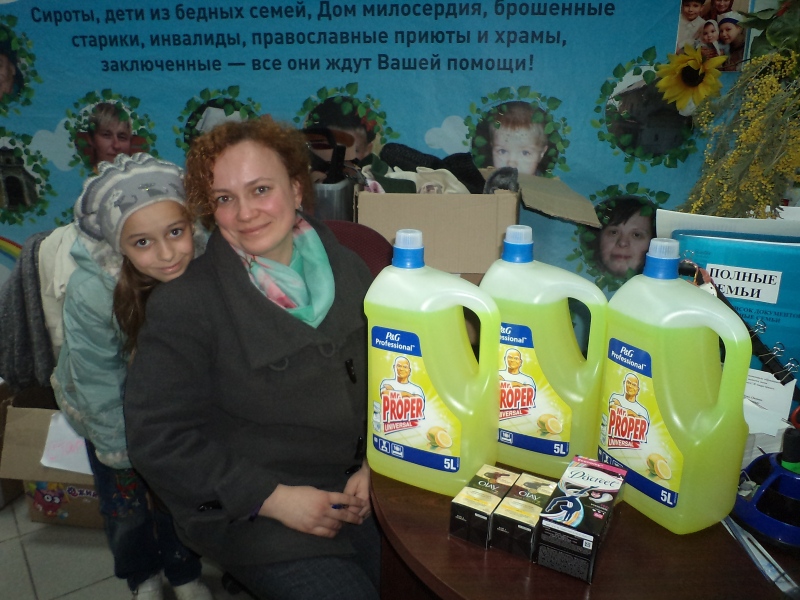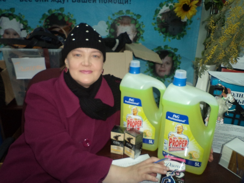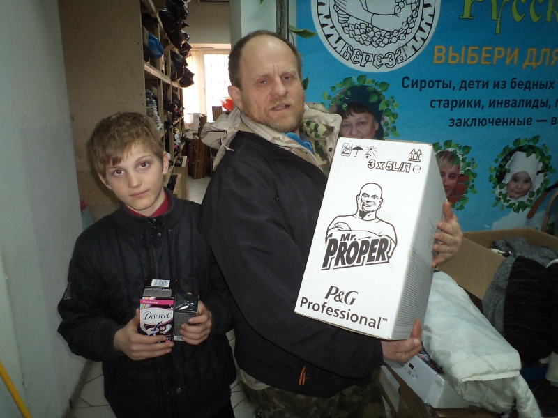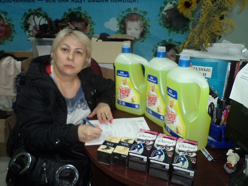 Огромное спасибо передают подопечные фонда "Русская Берёза" нашим благодетелям - Компании "Проктер энд Гэмбл" и "Фонду Продовольствия Русь"! 133 семьи  (из них взрослых 219, детей 323) получили помощь в виде моющего средства для полов и кафеля с ароматом лимона " Мистер пропер", средство для мытья посуды "Фейри", а так же средства личной гигиены  и крем для лица. Все подопечные были безумно рады получить такой существенный подарок!
