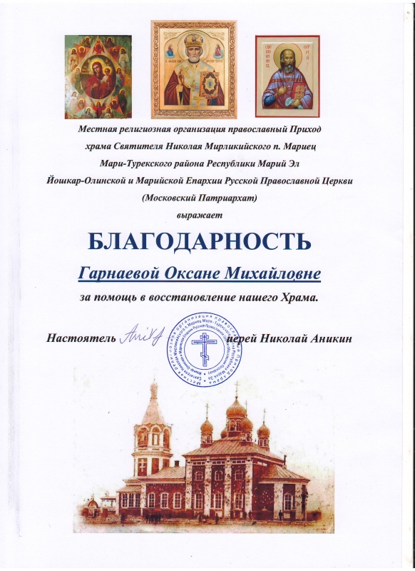 Благодарность от храма святителя Николая