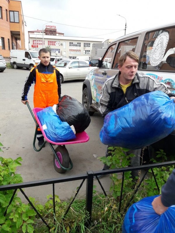 Когда фура была уже на подходе, то оказалось, что из-за габаритов, машина не может подъехать непосредственно к офису фонда. Это очень затруднило погрузку, ведь приходилось носить мешки с гуманитарной помощью на приличное расстояние. Но все сотрудники и волонтеры весело и слаженно начали погрузку, помогало и подбадривала та мысль, что кто-то получит обновки и порадуется.