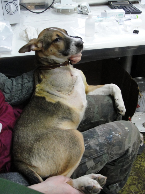 По просьбе нашего благотворителя Елены, мы недавно опубликовали объявление с просьбой помочь трехлапой собачке, лапу ей отрезало поездом. И вот: