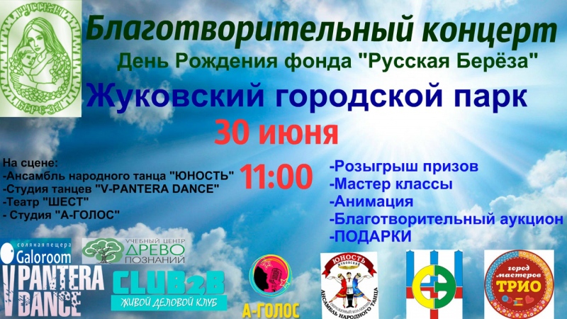 30 июня с 11 - 15 в городском парке г. Жуковский на дне рождения фонда "Русская Берёза" пройдет творческий мастер класс для самых маленьких! Ждем всех малышей!!!!!!