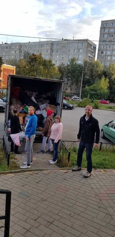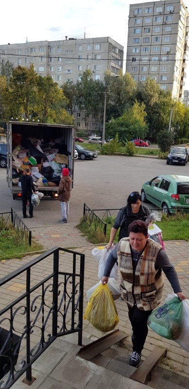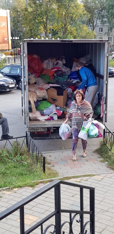 Но сколько нужно для того, чтобы выдать эту помощь подопечным! Аренда офисов в Москве и в Жуковском (отдел помощи), оплата транспортнировки гуманитарной помощи, тяжелый труд людей, кооторые работают с людьми, сортируют и выдают помощь, выбрасывают, действительно, барахло грязное и старое (хотя постоянно мы предупреждаем, чтобы не приносили то, что "жалко выбросить"). На фото сотрудники и добровольцы фонда, которые разгружают машину с вещами. Машина приехала из московского отдела. Стоимость транспортировки 5 500 рублей (это совершенно "по-божески", с огромными скидками, которые нам делает благотворитель). В месяц нам нужно оплатить от 4 до 8 машин, в зависимости от того, сколько принесут вещей в московский отдел. В такое тяжелое время, как сейчас, нам очень трудно оплачивать и аренду и машины, свой труд мы не жалеем, делаем всё сами. Зато в месяц помощь получают примерно до ста семей и, если, опять же, переводить эту помощь в примерный денежный эквивалент, то, получается, помощь выдается на 10 миллинов рублей!!!!! И, бывает, что семей приходит больше, например, в июне 2018 года, помощь получили 134 семьи!