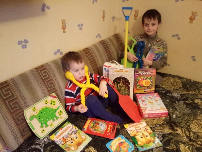 Здравствуйте Оксана Михайловна!Огромное Вам спасибо фонду "Русская Берёза" за замечательные подарки моим деткам. Дети в восторге!И развивающие игры, и большие лопаты для очистки снега, и детские книжки с картинками, и заколки для моих дочек, и шикарное нижнее бельё, и развивающий кинетический песок - всё это очень вовремя, особенно в Новый год, когда случаются чудеса... Спасибо Вам за это чудо!И за памперсы для нашей бабушки...