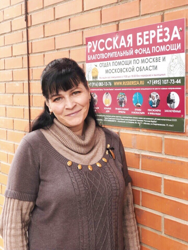 «Когда мы с дочкой переехали из Донецка, сначала жили во Владимирской области, потом переехали в Жуковский. Отчаянно искала работу. В России без паспорта не брали никуда вообще. Уже ни на что почти не надеясь, я забрела в фонд «Русская берёза». Тут мне оказали лучшую помощь: предложили работу. Здесь не важно откуда ты и какой у тебя документ. Здесь берут на работу людей. С их человеческими историями. Главное хотеть работать и не лениться!»