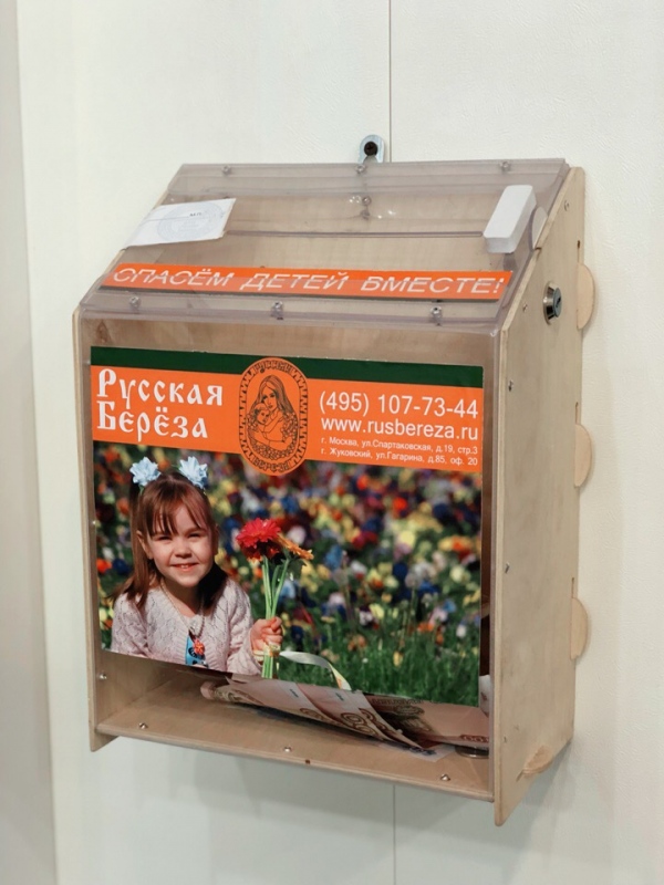 Все собранные средства идут на «Дом милосердия» благотворительного фонда "Русская Берёза", где находятся дети инвалиды (в основном, это сироты), которых привозят из разных регионов на обследование и лечение в Москву. На его содержание необходимо до миллиона в месяц. Любой желающий может помочь нашим маленьким подопечным и установить у себя в организации такой ящик-накопитель. Так же рядом с ящиками мы размещаем листовки, которые помогают привлечь внимание возможных благотворителей к нашему фонду.