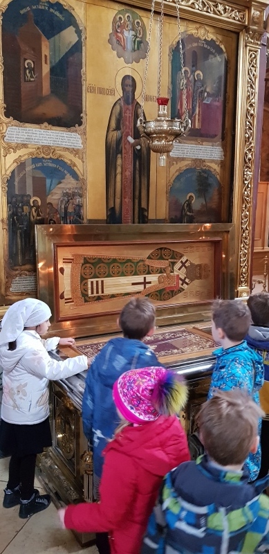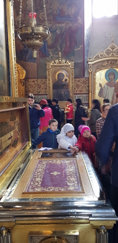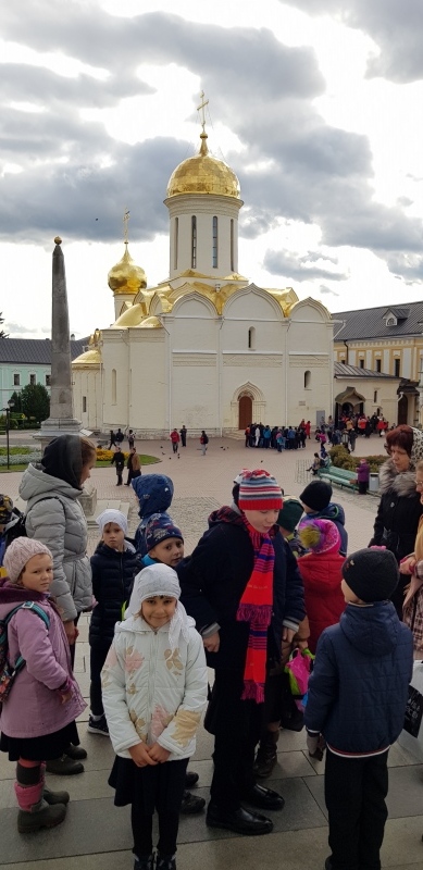 Как же хорошо, что Киру мы отдали в православную школу "Образ". Во-первых, к нашему особенному ребёнку относятся с теплом и терпением. Во-вторых, это совсем другой мир. Дети, конечно, как дети, но все они из православных семей, а это значит, что воспитываются все в одном душеспасительном направлении. Например, в начале учебного года, по традиции, всех первоклашек возят в Троице-Сергиеву Лавру, чтобы помолиться преподобному Сергию и взять у него благословения на учёбу. Когда нам назначили день паломнической поездки, было предложено родителям ехать с детьми. Конечно же, я вызвалась сопровождать Киру, потому что неизвестно когда бы еще я при своей занятости попала бы это святое место, которое я очень люблю. Святой преподобный Сергий Радонежский - Небесный Покровитель нашей семьи, в честь него я назвала своего первого сыночка Серёженьку. Несмотря на то, что в Лавре всегда много паломников и экскурсантов, обитель наполнена какой-то необыкновенной благодатью. Оттуда всегда возвращаешься с чувством, будто в душе появляется солнышко))))