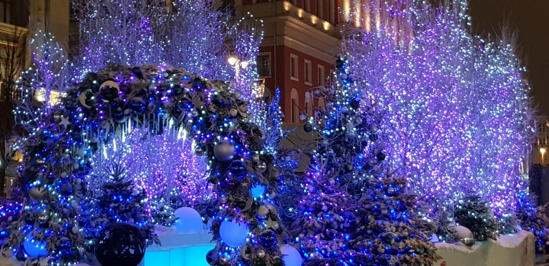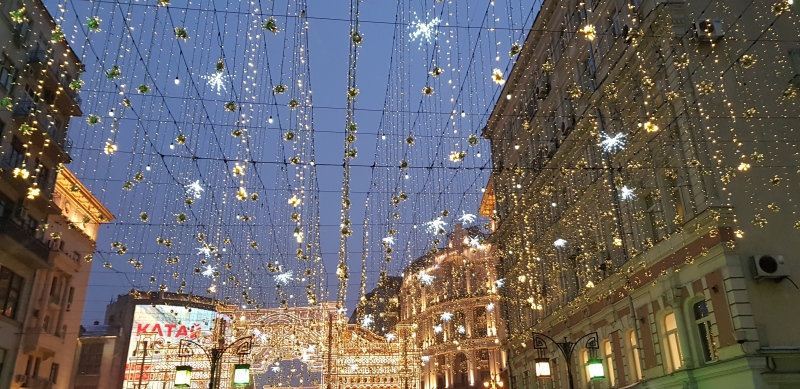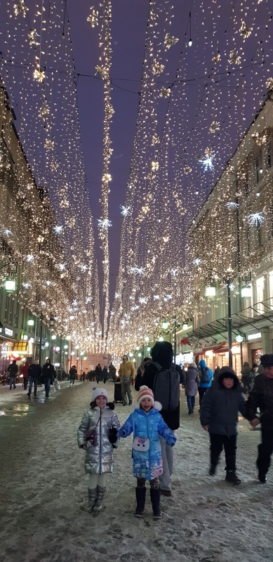 С детства я мечтала побывать в Москве в канун Нового Года. Верите, у меня не было возможности или времени, чтобы полюбоваться на новогодний дух столицы. Я даже в Питере была специально после Рождества, бродила по сверкающему Невскому, любовалась ярким свечением праздника. А вот, живя всю жизнь рядом с Москвой, не могла ни разу выделить хотя бы день - суета, подготовка к празднику, мероприятия фонда. Дети были маленькими - вообще не до того. 10 лет, например, я работала в Елоховском соборе. 31 декабря и 1 января обычно были мои рабочие дни. Как-то график так складывался. Бегом, бегом домой после работы и некогда смотреть на красоту.