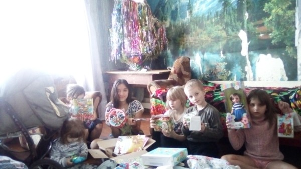 Здравствуйте, дорогой фонд "Русская Берёза"! Мы сегодня получили посылку с OZONа. Исполнилась у одного ребёнка мечта!!!! Тане прислали большую куклу и подарок. Остальное пришло 5 подарков, книжки раскраски и книга, музыкальная щенок, машинки2, кубики деревянные, книжка с зверюшками, цветные карандаши 4, восковые карандаши, 2 свитера для девочек, 2 костюмчика, комбизончики лекикий и тёплый, 2 штанишков. Спасибо больше при большое дедушке Морозу и благотворители, и Русской Берёзке, мы очень благодарны за подарки,дети были в восторге от этих подарков, я даже не могу высказать восхищение моих детей, их эмоции. И каждый всхишяется тем, что им прислали. Выражаем огромную благодарность и желаем здоровья и счастья каждому и Вас, какие хорошие люди и храни Вас Бог. Мик Светлана Юрьевна, Омская область, Многодетная семья, 7 детей.