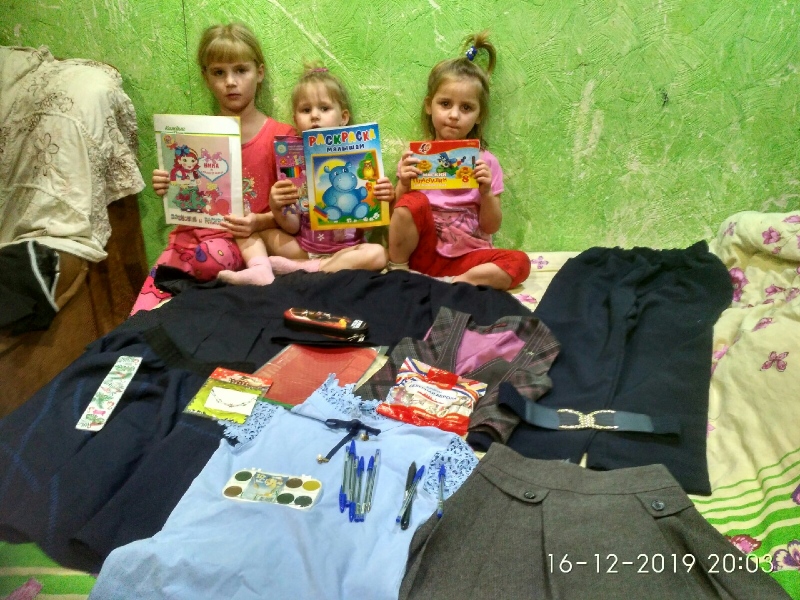 Здравствуйте, Оксана Михайловна и наши дорогие сотрудники фонда "Русская Берёза"! Вчера мы получили посылочку от Снопковской Евгении. В посылке были школьные формы и юбочки на старших девочек. Для меня брючки красивые, они мне как раз по размеру. Для детей раскраски, ручки, краски. Мои дети хотят передать Евгении большое спасибо за конфеты .Вторая посылочка пришла от Ивановой Елены, в ней тоже были полно игрушек, книжек, раскрасок, пазлы, мыло, сережки очень уж красивые. Кроме этого ещё была курточка на мужа тоже очень красивая. Спасибо вам, наши дорогие благодетел,и что не бросаете нас, мы вас очень любим всех. С любовью и уважением к вам Батуева Галина Владимировна, Пермский край, Многодетная семья, 6 детей
