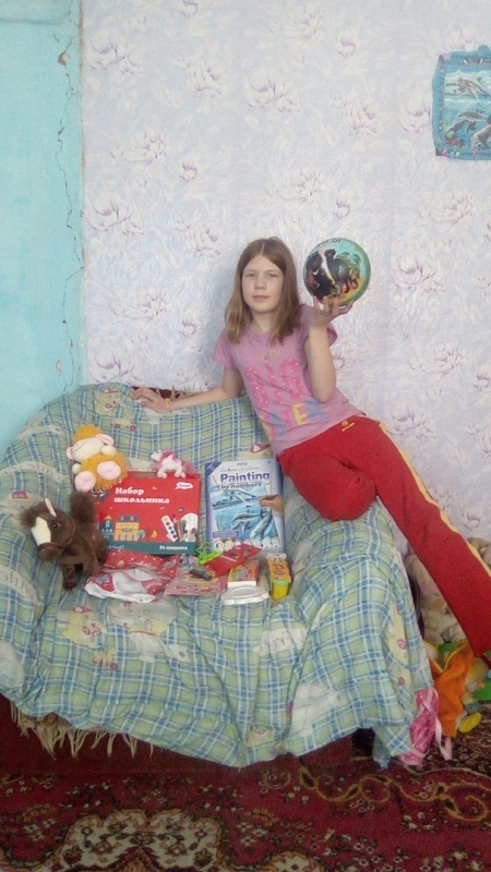 Здравствуйте, дорогая Оксана Михайловна, сотрудники фонда "Русская Берёза", благотворители! Получили мы посылки с Московской обл. и ещё из фонда. Большое спасибо, прислали всего столько, аж глазки блестели, Настя разбирала - столько к школе принадлежностей, игрушки, продукты, наклейки клеила, очень Настя довольная. Спасибо всем огромное! Зырянова Алёна Юрьевна, Иркутская область, Неполная семья, 2-е детей.