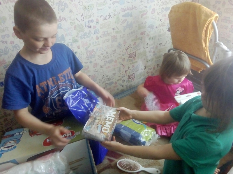 Здравствуйте фонд "Русская Береза",,все благотворители! Сотрудники дорогие фонда! Сегодня мы получили посылочку от Анастасии Перелыгиной из г.Подольска! Благодарим с детьми от всего сердца за маечки и водолазки в школу, много игр для них также интересных, пластилин и полотенца для дома! Спасибо за вашу помощь нам, за ваши добрые и заботливые сердца! Дети счастливы, я рада! Здоровья вам, счастья, и мира в ваши семьи! Скрыпник Елена Георгиевна, Оренбургская область, Многодетная семья, 5-е детей.