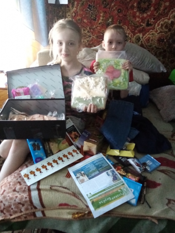 Так же нам пришла посылочка от Акатовой Екатерины. В.. От Екатерины мы получили тоже сладкую посылочку, обалденные расписные пряники, как маленькие картины, леденцов много, маршмеллоу 2 упаковки и для Германа двое штанов и рубашка. Ох, все насладились вашими подарочками, спасибо вам огромное, Екатерина и низкий вам поклон от нашей семьи. Всю радость передать не могу в словах. Путяйкина Светлана Юрьевна, Кемеровская область, Многодетная семья, 5-е детей