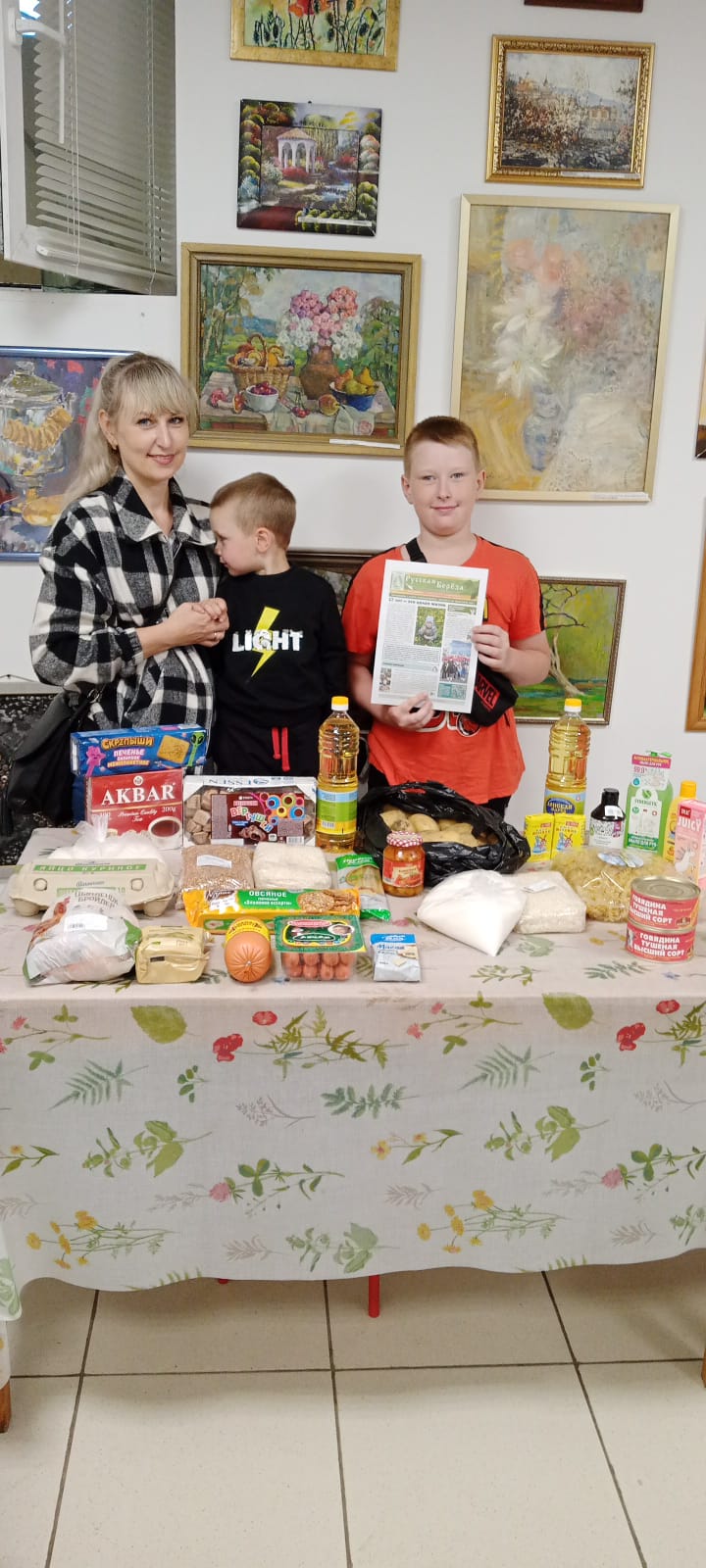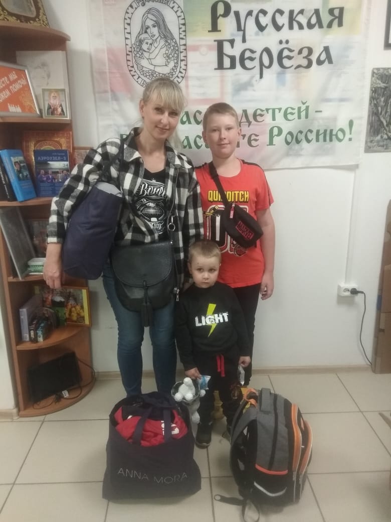 ...К помощи, которую оказал фонд "Русская Берёза", вошли ещё продукты и средства гигиены, которые привезла дочка Оксаны Михайловны Александра со своими друзьями, нашими благодетелями. Не описать радость и благодарность детей и мамы. Старший мальчик взял в руки пакеты с сахаром и как- то с восторгом и восхищенной бережностью сказал: "Мама.... сахар" . Только от этой фразы у присутствующих защимило сердце. Младший Даня все боялся чего-то , прятался в мамины ладони. Кирюша, уже по взрослому вместе с мамой рассказывал нам о взрыве, рухнувших домах.. После машинок, которые подарили малышу, он потихоньку расслабился, с у удовольствием покушал и выбрал себе в подарок беленькую Заюшку. (Зая от мастерицы Зои, согреет детское сердце).