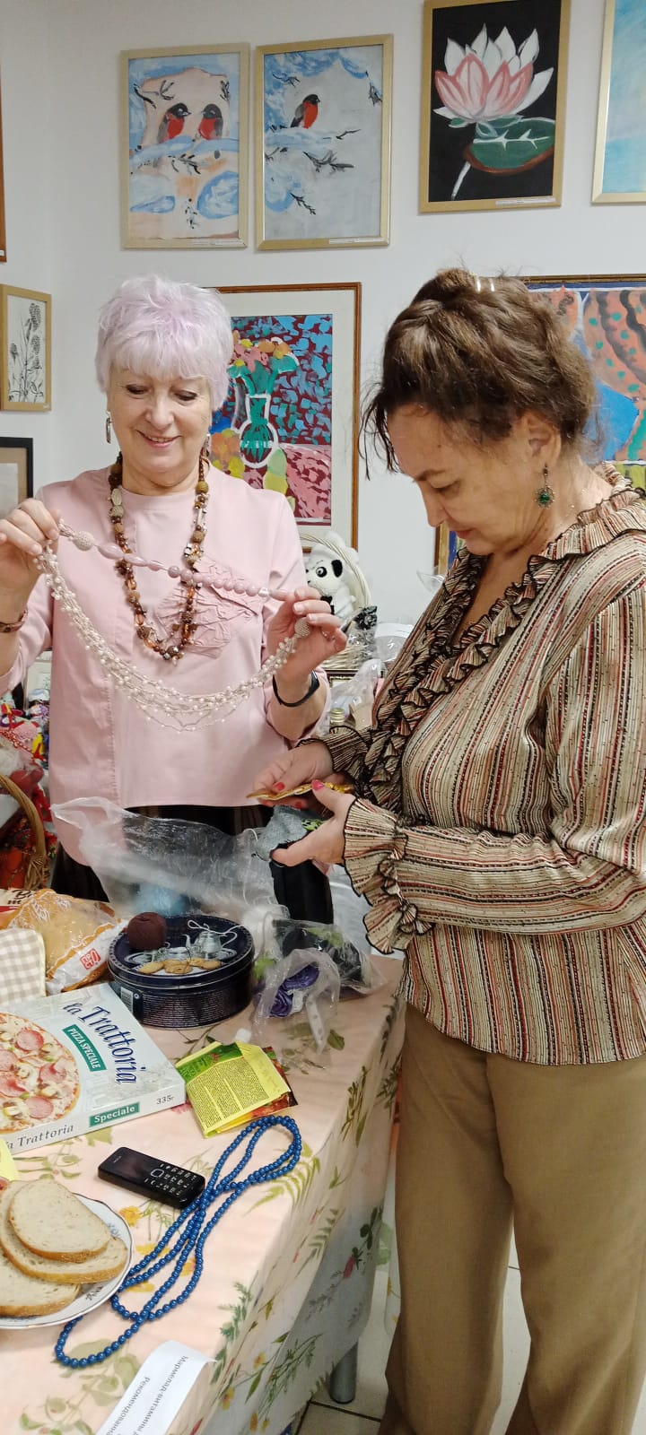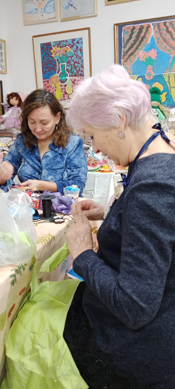Потому что возраст не помеха общению, добрым делам, встречам. Вот у нас в благотворительной галерее занимательные и красивые мастер-классы по изготовлению бус. Это э как приятно такие носить! Их же нигде не купишь! Всё сделано своими руками. Чудесные мы мастерицы! Делаем такую красоту. Мы очень рады, что есть место, где нам можно встречаться, как дома. И летом в жару, и зимой в мороз - здесь всегда душевный "климат - контроль". Ещё мы молимся, чтоб Господь послал добрых людей в помощь оплачивать аренду. Помещение-то фонду никто не даст бесплатно. А здесь место чудодейственное - начинается улучшение, когда совсем трудно. Вы помогите нам, пожалуйста. Нас много просит людей в возрасте, теперь беженцы с нами. По копеечке скинитесь, так и нам будет спокойно, что мы нужны ещё кому-то. И молиться за вас будем! Или хотите - бусы сплетём, милые!!!! Приезжайте, сами увидите нас! Красивых, счастилвых, весёлых, озорных!