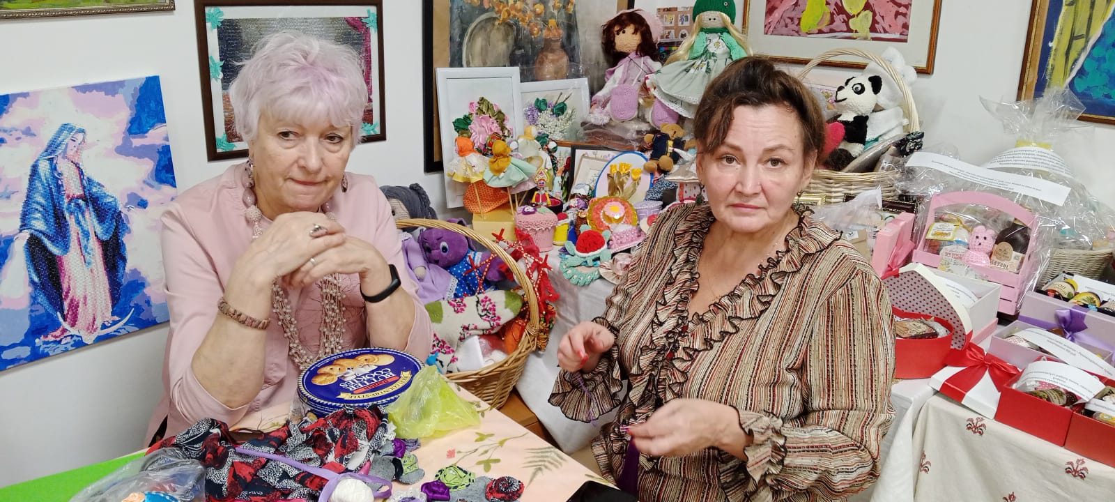 Мы, к сожалению, не записали стихи, которые читала в благотворительной галерее Елена. Они были прекрасны! Стены благотворительной галереи разверзлись и мы унеслись в прекрасный мир душевной поэмы. Во время чтения стихов, наши девочки делали шикарные заколки и бусы. Знаете, как в старые времена. Сидели матушки за прялкой, пели и приговаривали. И так хорошо на душе. И самое хорошее то, что люди здесь находят себя. И хочется даже закончить стихами Сергея Есенина. Потому что нужно только захотеть и сразу увидишь - милосердие рядом.