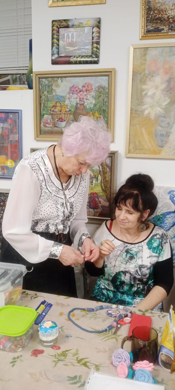 делали у еас в благотворительной галерее наши девочки под предводительством прекрасной Зоеньки. Как они прекрасны! И девочки и бусы, конечно! Каждая гроздь - эксклюзив. И знаете, бусы такие тёплые, они хранят душевный восторг добрых сердец! Каждые выходные наши красавицы собираются, чтобы порадовать друг друга своими умениями и научит делать что-то прекрасное. Мы рады, когда к нам приходят гости, которые могут скрасить любой день, в который попали наши девушки! Да, что это мы. Между прочим, не только девушки. У нас и молодые люди тоже часто бывают! И все рады и счастливы! Проект встреч у нас социальный, поэтому будем рады любой помощи!!!