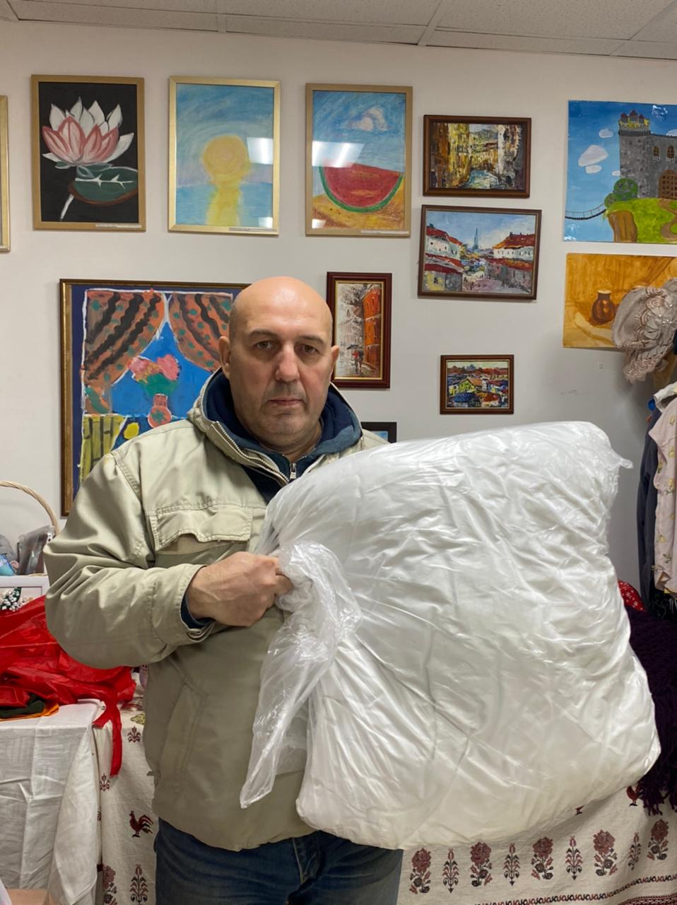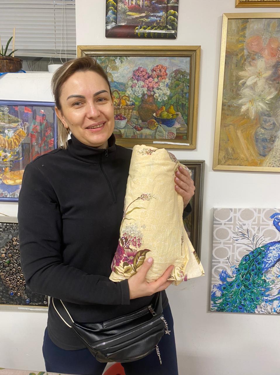 Галич Юлия - Луганская область, город Кременная. Все пришли за помощью в один день. Кроме всего, Сергею дали плед, Юлии постельное бельё. От благотворителя Марины внуку Сергея - памерсы. Купили подушку. Приехали они с минимальным количеством вещей, Сергей инвалид 3 группы, больные ноги, на работу тяжело устроиться. И вообще очень тяжело. Состояние подавленно - трагическое. Единственная отдушина за всё это время - помощь от нашего фонда. Для людей это чудо.