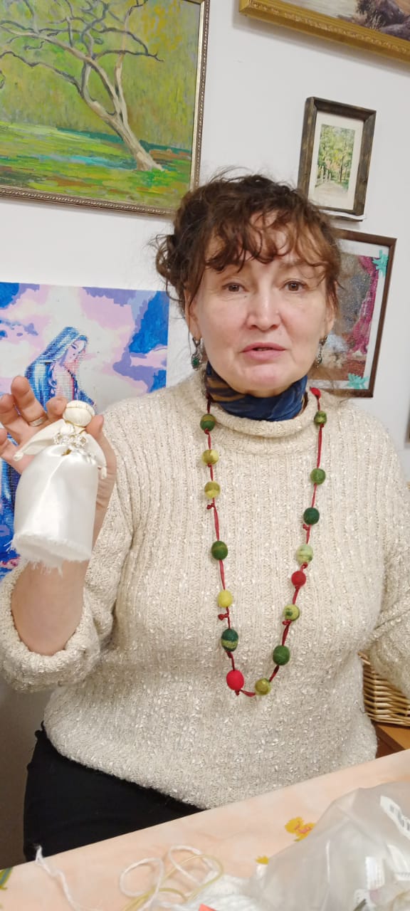 Ученица Зоиньки Елена делает украшение для предстоящего спектакля с её участием. Она начинающая актриса самодеятельного театра. Пожелаем ей успехов!!! Навязали на ярмарку ангелочков и зайчиков (кстати все разошлись). Ангелочков учила делать наш добрый друг Вера Павловна. Столько красоты от наших мастериц! На новогодние праздники придется сделать несколько дней выходных. А наши все трапезники, мастера, ученицы будут скучать.. Как же нужна всем наша благотворительная галерея/трапезная, объединяющая людей в этом огромном мире. Новый Год несет нам новых подопечных, новые заботы, мы примем всех - главное оплатить аренду! Мы же сделаем это, правда? А вы заходите к нам на чай и за душевыми подарками! Увидите, как у нас мило!