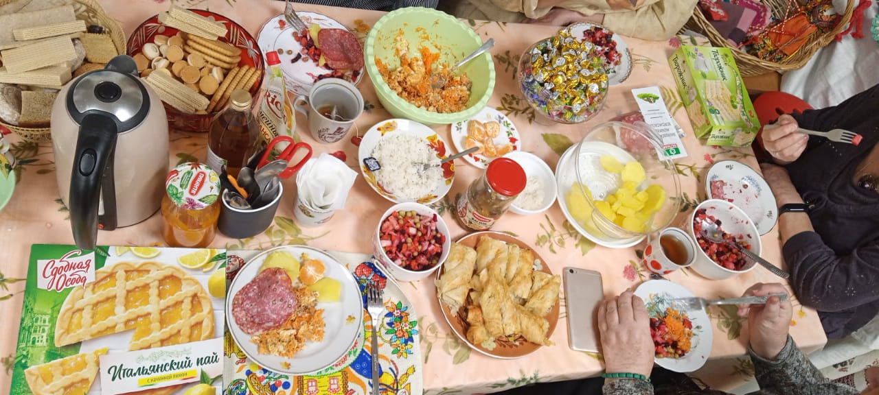 За трапезой Дмитрий, беженка Валентина, Андрей и Александр, подопечный фонда "Русская Берёза" Люлечник Виктор и благотворительница Ольга. Люди, которые попали к нам разными путями. Но стали одной большой семьей, настоящими друзьями! Спасибо всем, кто поддерживает нашу трапезную!!!