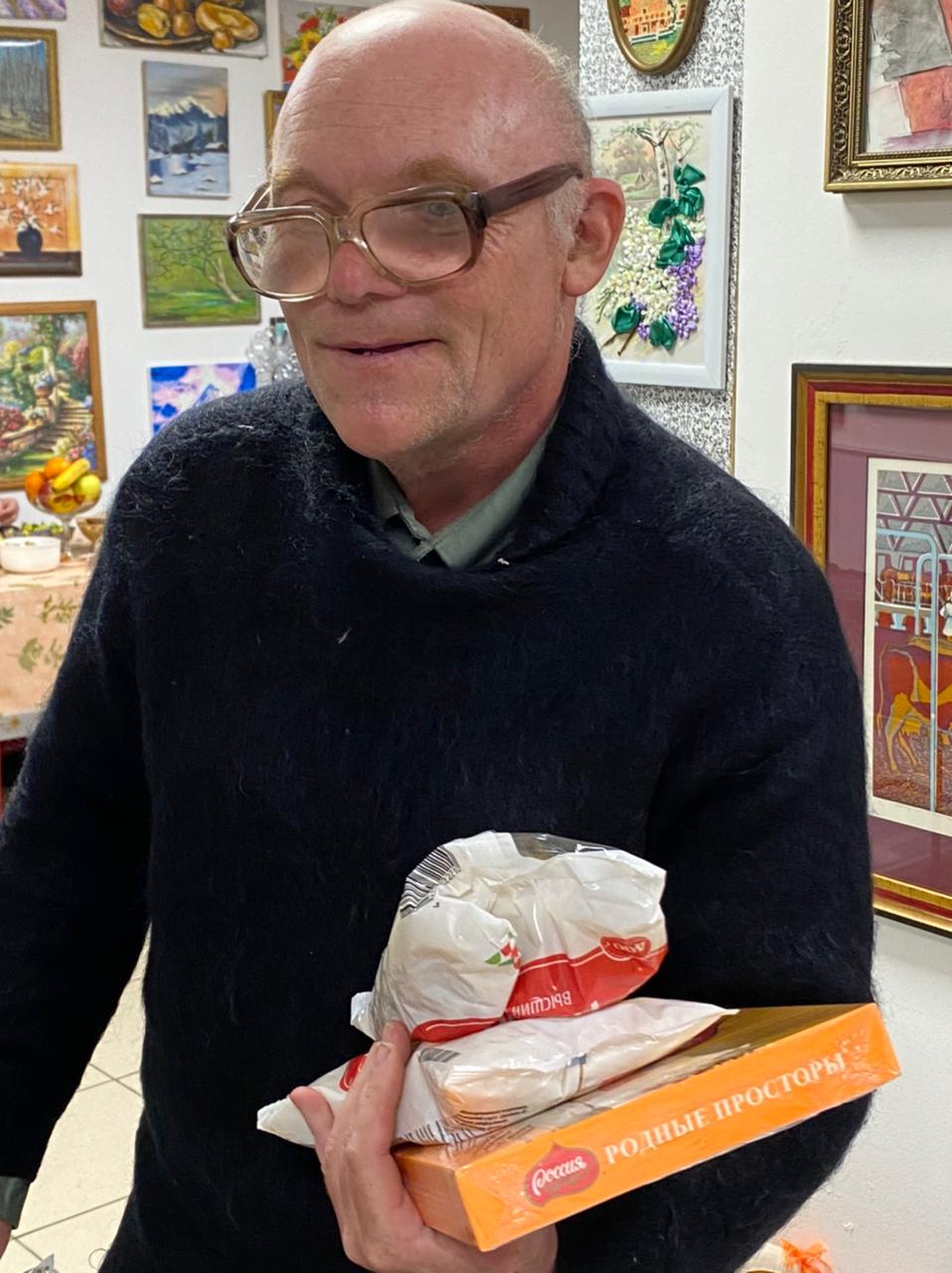 Сердечно благодарим нашего дорогого трапезника Дмитрия, который, как часы, со своей пенсии постоянно покупает макароны беженцам. А в этот раз он ещё принес и конфетки на трапезу! Милейший человек!!!!