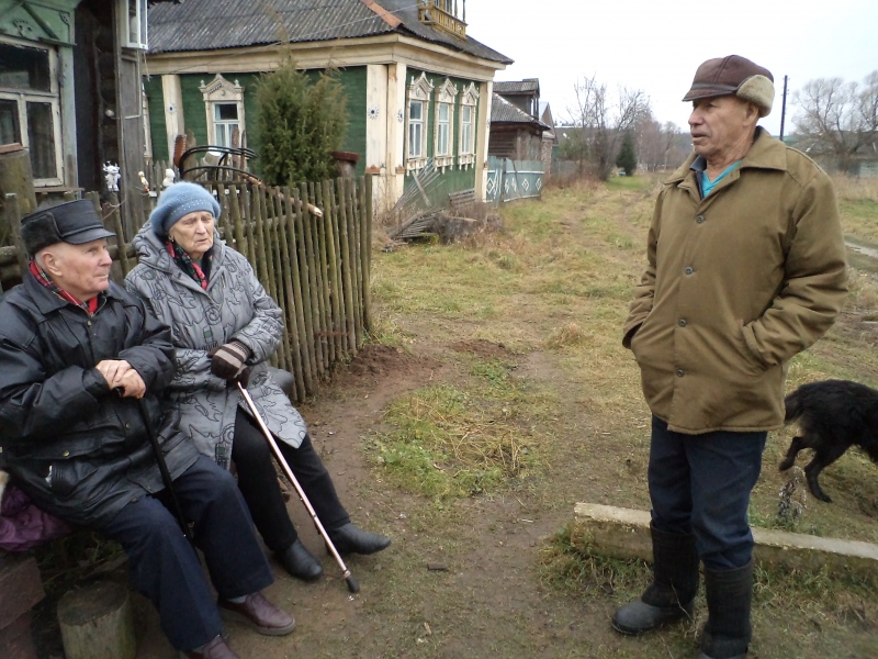 Радость стариков в деревне не знала границ. Они с огромной радостью приняли подарки от Бабы-Дуси. Долго рассказывали нам о своей жизни в деревне, о том как заготавливали все лето дрова для печи, о том как приходится ездить за пенсией. О том как долго ждали скорую помощь из ближайшего районного центра. Нас пригласили в дом и принялись угощать самым вкусным, что у них есть. Это своей картошкой, сваренной на печи и солеными грибами. За интересными разговорами мы просидели несколько часов, а когда поехали домой, старики стояли и махали нам в след.