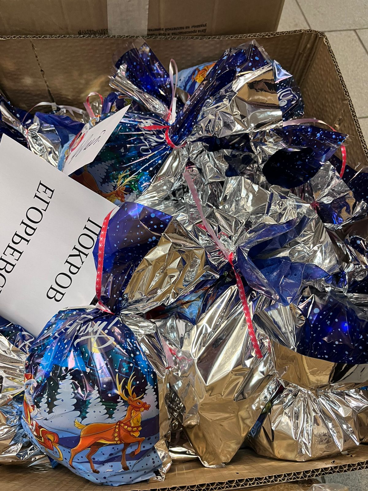 250 сладких новогодних подарочка уехали в Центр гуманитарной помощи "Покров" при Приходе Алексиевского храма г. Егорьевска.