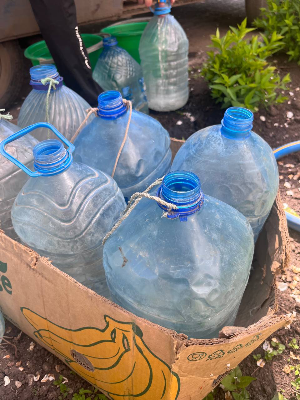 Так приходят за водой люди, которые сами могут дойти и набрать у нас.