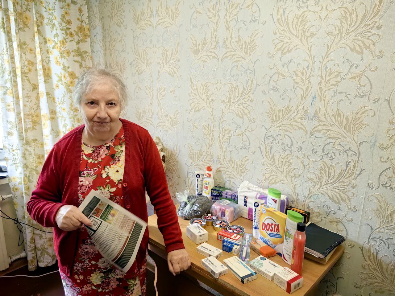 Здравствуйте! Меня зовут Алтунина Светлана Валерьяновна. Сегодня ко мне приехали Даня и Аня, привезли средства личной гигиены, бытовую химию, немного продуктов и необходимые мне лекарства на 5000 рублей. Хочу выразить благодарность всем, кто помогает, не оставляет нас, оказавшихся в тяжелой жизненной ситуации. Приятно, когда про тебя помнят, помогают и навещают. Порой одной мне бывает очень грустно, но такая помощь вытягивает из всех невзгод. Спасибо. Алтунина Светлана Валерьяновна, Моск. обл., пенсионер