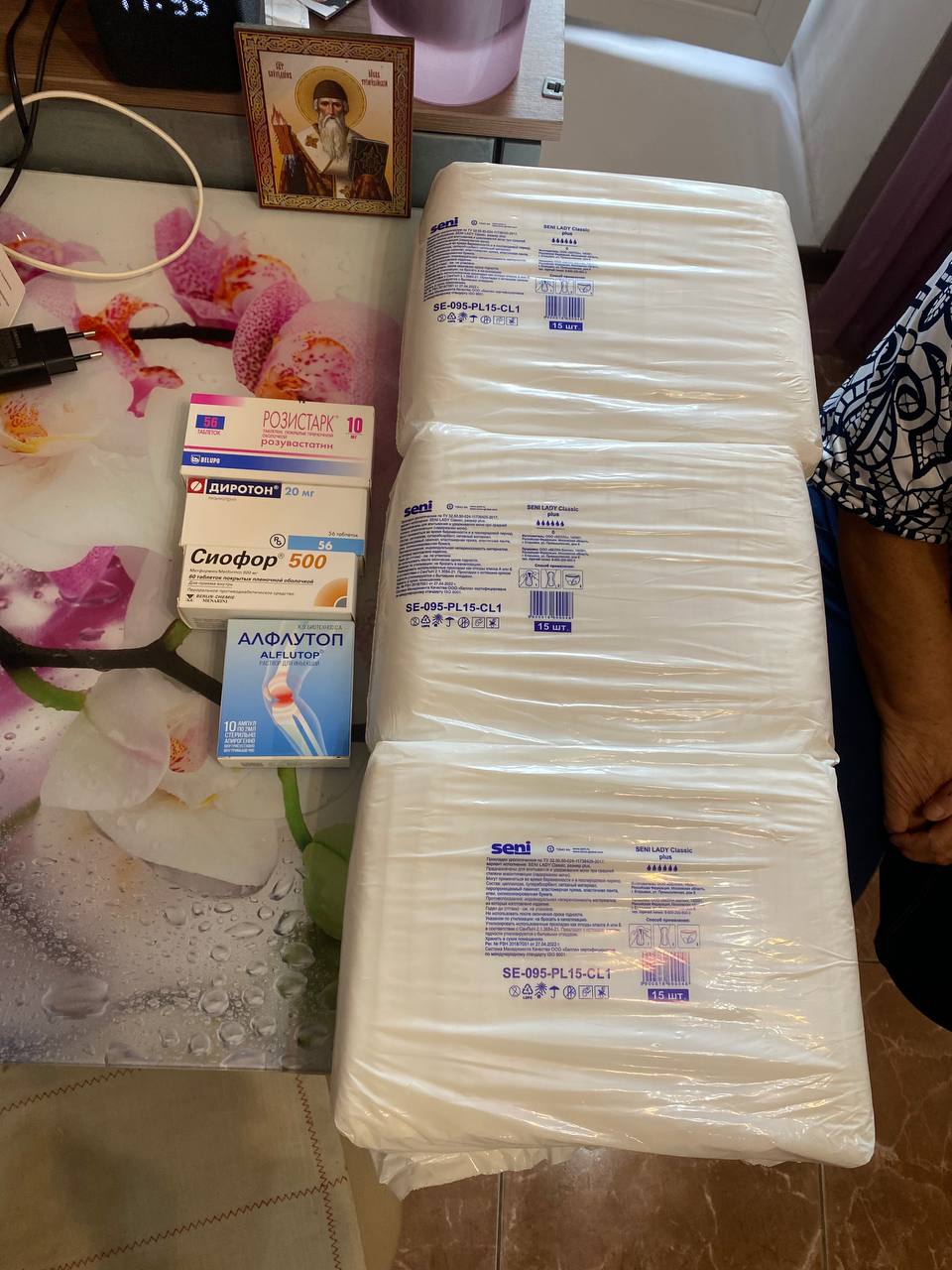 Здравствуйте! Сегодня ко мне приезжал сотрудник, который привёз необходимые лекарства и урологические прокладки, на 5300 рублей. В октябре я должна была начать курс уколов, но никак не могла их купить, так как цена кусалась. И чудо - Вы, которые вспомнили про меня, оказали помощь. Спасибо огромное, что Вы рядом, когда надежда уже пропала! Жестовская Любовь Викторовна, Моск. обл., пенсионер