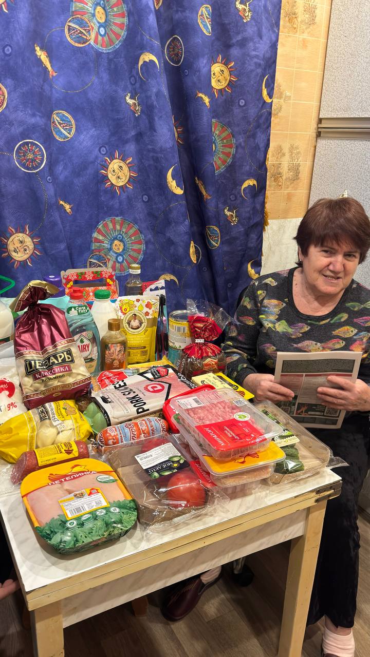 Я, Теряева Нина Пантелеевна - пенсионерка, страдаю варикозом. Вместе с мужем Дмитрием Лазаревичем (страдает глаукомой) приехали из Мариуполя. Фонд «Русская береза» оказал нам помощь, на сумму 5200 рублей, в виде продуктов и средств гигиены. Спасибо огромное! Дай Бог всем здоровья! Теряева Нина Пантелеевна, г. Москва, пенсионер