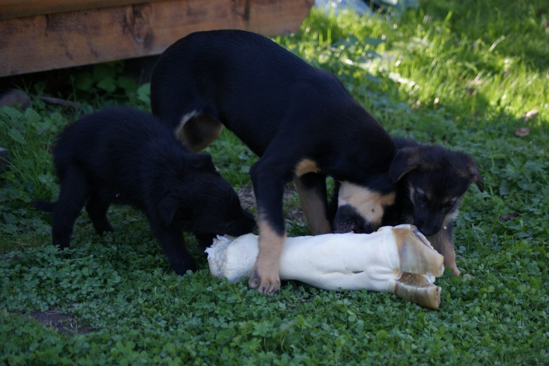 Собаки, сразу видно, будут хорошими охранниками, так как уже по щенячьи облаивают подходящих ко двору людей.