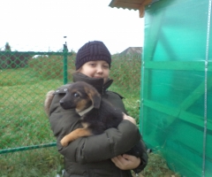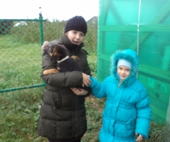 Пора было закрывать летнюю базу центра профилактики социального сиротства, а собачек мы так и не пристроили. И вдруг выход нашёлся. Всех щенков решили пристроить подопечные фонда "Русская Берёза" семья Беломысовых (4 детей, Владимирская Область). В деревне уже лежал снег, в доме было очень холодно, щенки могли заболеть. Но наши замечательные подопечные забрали всех четверых собачек, оставив одного себе, а троих оставив соседям.