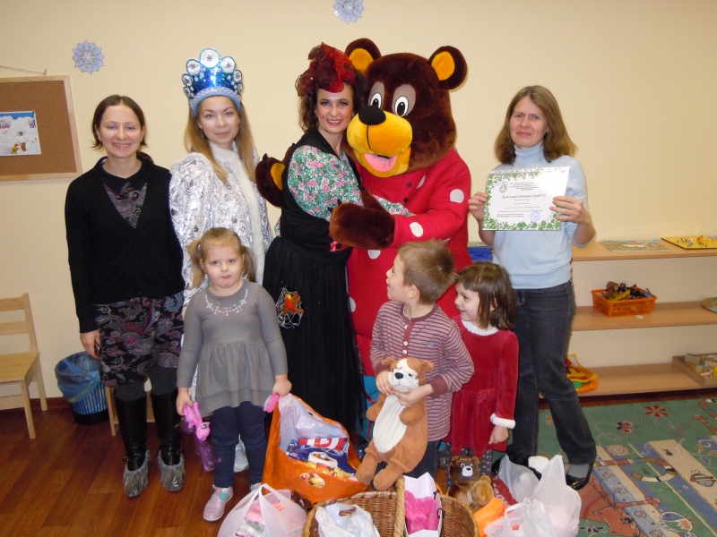 Школа роста "Гений", группа "Волшебники". В группе 8 деток. Волшебники собрали сладости, игры, мягкие игрушки и вещи для подопечных фонда "Русская Берёза". Инициировала сбор педагог группы "Волшебники" - Склепина Наталья Юрьевна. Родители с радостью откликнулись. Мишка Потапыч с Корзиной Добра и Снегурочка из фонда "Русская береза" приехали к детям лично, чтобы поблагодарить их за доброе начинание!