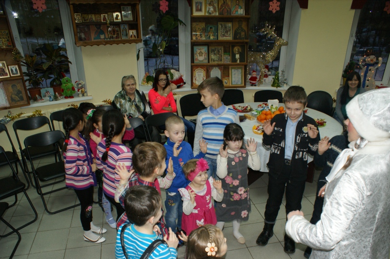 Подопечных деток фонда "Русская Берёза" пришли поздравить Дед Мороз и Снегурочка. Дети играли в подвижные игры, рассказывали стихотворения, водили хороводы, веселились. Всем детишкам подарили сладкие подарки. Спасибо большое Анимационной студии праздников "Василёк" г. Раменское за подаренный праздник). Это агенство подарило от себя сладкие подарки , а остальные подарки были от Екатерины Жук ( Юдаевой).