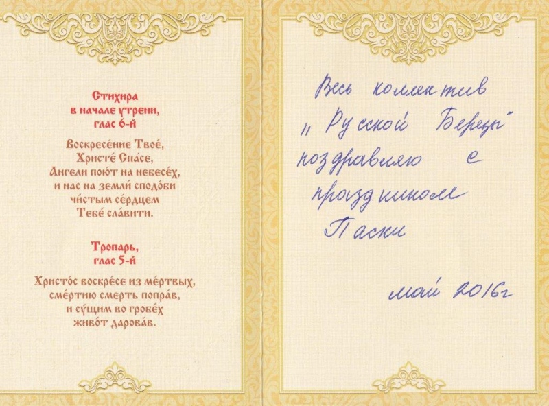Дорогие друзья, благодетели и подопечные фонда «Русская Берёза»! От всего сердца поздравляем вас с праздником Светлого Христова Воскресения! Желаем вам мира, добра, здравия и благоденствия! Любите и жалейте ближних, помогайте друг другу, как заповедовал нам Христос. Никогда не отчаивайтесь и не сдавайтесь. Потому что Добро всегда побеждает Зло и самый главный этому пример - Воскресение Христа. Если вам трудно, не стесняйтесь обратиться за помощью, быть может, кто-то как раз очень хочет вам помочь. А если у вас есть силы поддержать ближнего хоть словом, не скупитесь на милосердие. Ведь к вам добро обязательно вернется. Христос Воскресе!