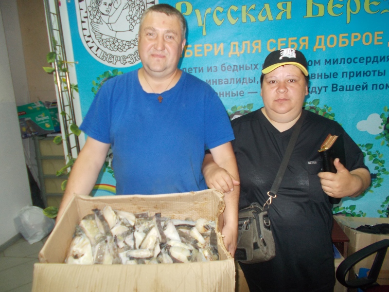 А ещё наши подопечные отведали рыбки, которую в фонд "Русская Берёза" привезли сотрудники "Социальной инициативы". Рыбу пришлось раздавать тут же и срочно вдогонку за огурцами, ведь это хоть и вкусный, но очень капризный продукт. И ушли наши подопечные из отдела помощи радостные и довольные, благодарящие добрых людей за такую огромную поддержку.
