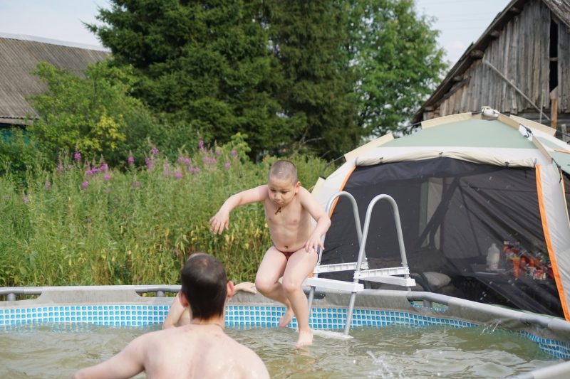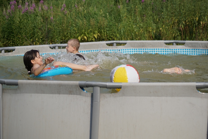 Наконец-то мы вывезли детишек на летнюю базу центра профилактики социального сиротства при фонде "Русская Берёза". Весь день они резвились, веселились, играли и купались в бассейне, которые нам подарили благотворители. Мало того, что у нас там воздух целебный, да ещё теперь такой замечательный водоём! Водичка в нём очищается специальным фильтром. К сожалению, пока нет дополнительных домиков, выезжать мы можем только одним днём, но и этот день для жителей душного города - спасение!