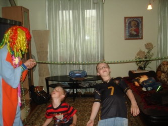 В дом милосердия приезжают дети со всей России. Чаще всего, за всю их детскую жизнь, это первая поездка. У детишек появляется отличная возможность посмотреть мир и познакомиться с ребятами из других регионов России. Тяжелая материальная жизнь, облеченная проблемами, связанными с заболеваниями детей, накладывает отпечаток на моральное состояние человека. Клоун Ляля - добрый и замечательный. Он знает, какими бывают застенчивыми ребята, как трудно живется их мамам, стесняются начать разговор, игры и поэтому Ляля пришел на помощь на помощь детишкам и мамам из дома милосердия. Общими играми и конкурсами веселый клоун так увлек ребят, что их трудно было остановить. Даже маленькая Любочка одела праздничный колпачок и очень хотела поиграть в животных или сделать аквагрим. Программа веселого клоуна Ляли называлась "Поиск настоящих друзей". И действительно, увлекательное представление с конкурсами смогло объединить не только детей, но и их мамочек! Посмотрите на фотографии! Они у нас тоже уже под ручку и в веселых колпачках. Вот здорово! И многокиломметровых разделителей уже не существует! Есть только искренняя дружба и пожелания друг другу счастья, радости и выздоровления детишек! Ура!!!! Клоун Ляля, приходи к нам еще, когда приедут новые грустные детки! Мы их развеселим и подружим!!!