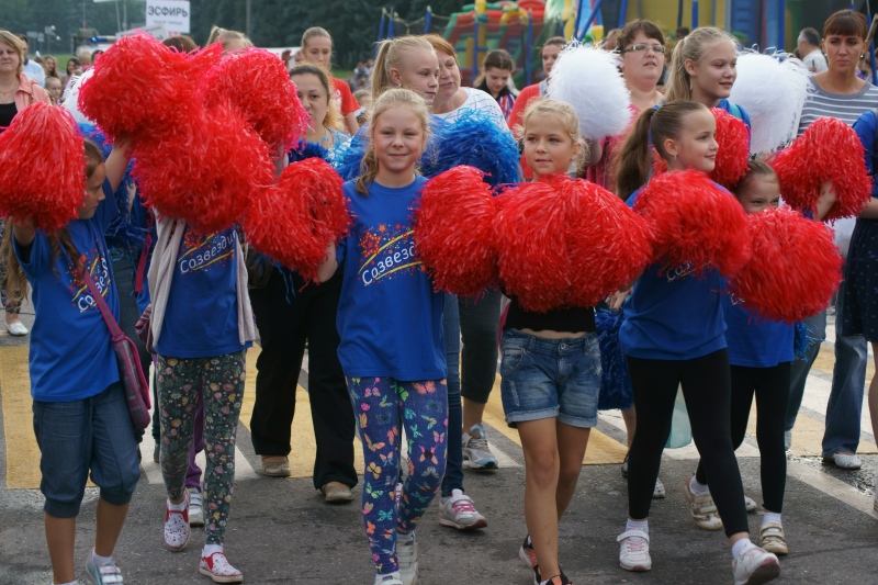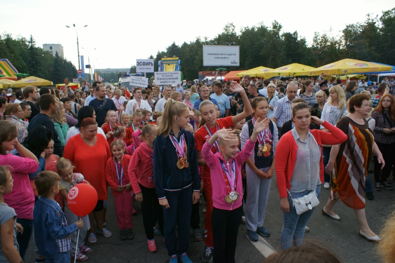Очень торжественное было шествие разных организаций города. Так мощно. Мы это шествие тоже очень ждали, потому что вместе с детской спортивной школой шла наша чемпионка Малюся.