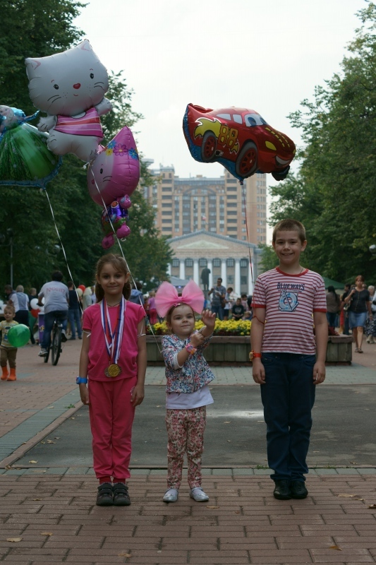 В Жуковском сегодня праздник. День города. Мы сопровождаем Дусю на выступление. Она должна танцевать свою "Куколку". Но малышам танец отменяют, так как начался проливной дождь. Дождь, правда, потом заканчивается, мы переодеваем нашу куколку и просто радуемся со всеми, кто пришел в центр города на Бульвар Молодежи. Играет музыка, вокруг царит веселье, много палаток с разными сувенирами, мастер классами, игрушками и, конечно, вкусностями. Дуся, вначале очень расстроилась, что не выступила, но вскоре развеселилась, потому что праздник!!!