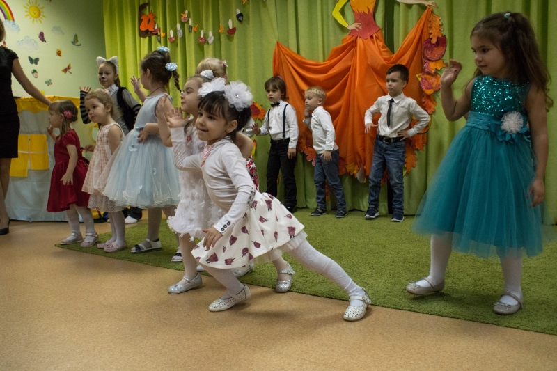 На празднике осени в детском центре развития Дуся была Перчиком, а Кира Петрушкой, вместе девочки рассказывали стихи про овощи. А еще танцевали и пели. И у Киры все очень хорошо получалось.
