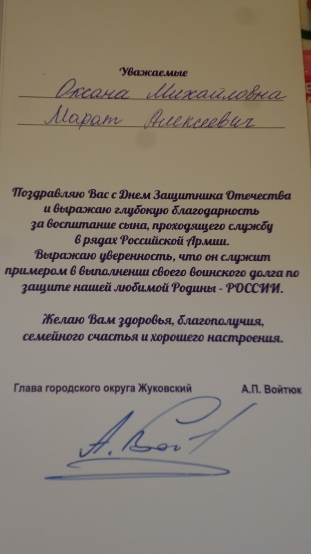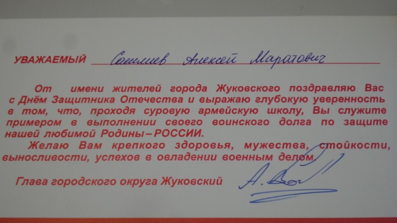 В День Защитника Отечества нашего Лёшеньку поздравил Глава г.о. Жуковский