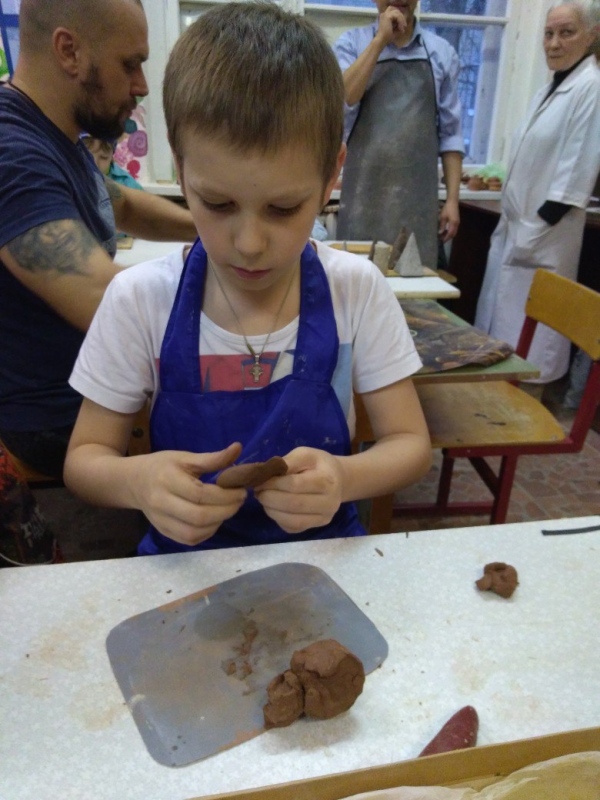 Рома каким-то образом увлёк на занятия гончарным делом и Артема и Кирилла. Еще и Семен просится, но у него занятия совпадают с танцами. А ведь один пищал: "не хочу ходить", другой ржал, и вот все сами пошли))))