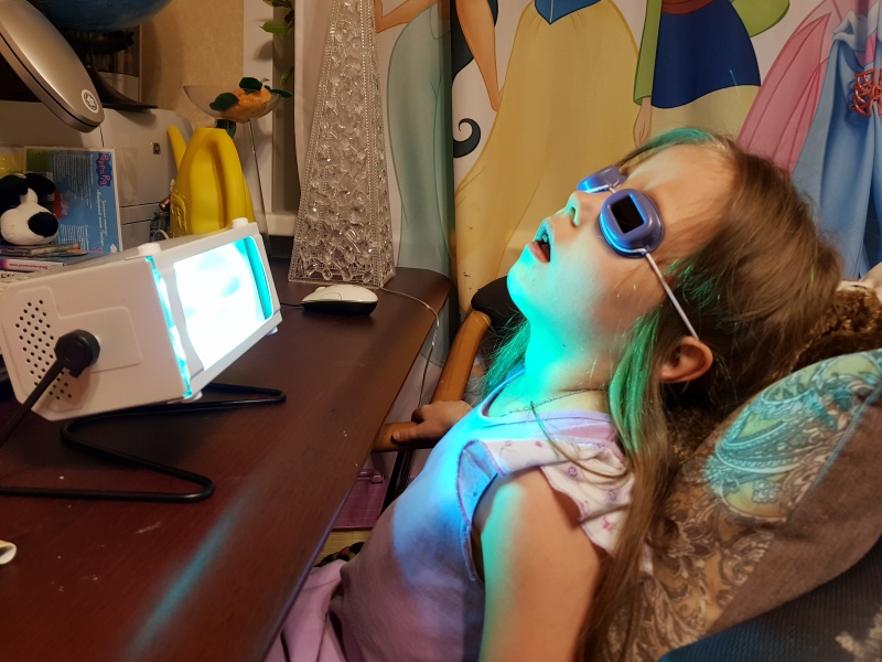 Каринка к нам попала с кучей болячек. Одна из неприятных какие-то моллюски. И лечить их, поднимая иммунитет и кварцеванием. Вот так мы сидим, смиренно кварцуемся. А что делать... Зато моллюски почти исчезли.