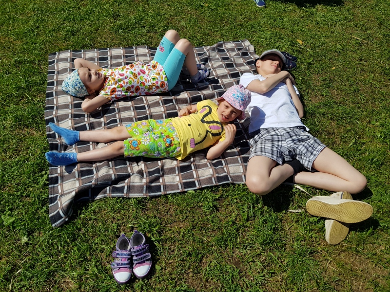 Думали мы, думали, как лучше всего провести день рождения Рустамки и решили, что в Петровский пост это должна быть рыбалка. Тем более, что большая часть нашего огромного семейства удочки в глаза не видела. А тут ещё Ромик из деревни присылает фото с вечерней зорьки, мальчишки давно ему завидуют. Вот мы собрались и пошли на рыбалку, отправив вперед водителя с продуктами)) На природе-то ох, как хорошо естся. И всё подряд, без выбора и часовых сидений за столом. Да, конечно, можно было обойтись обычным кафе с примитивной пиццей. Но мы так редко подолгу бываем вот так все вместе. Все заняты, кто учится, кто работает... Да и мероприятия, чаще всего, возрастные. 15-летний подросток не пойдет туда, где интересно 5-летнему малышу и наоборот. Даже родным брату с сестрами некогда пообщаться, неговоря уж о нас, взрослых, вечно занятых. В общем, мы вырвались на природу!