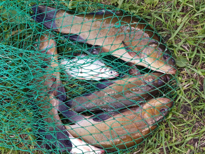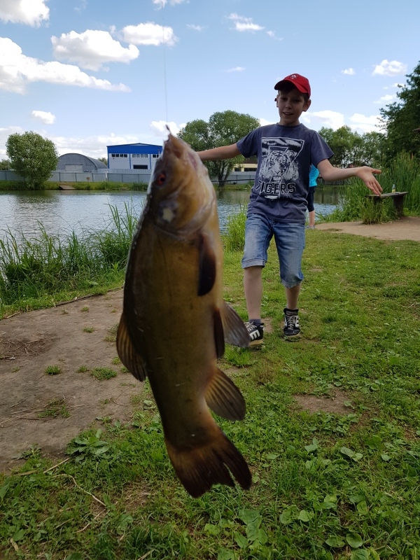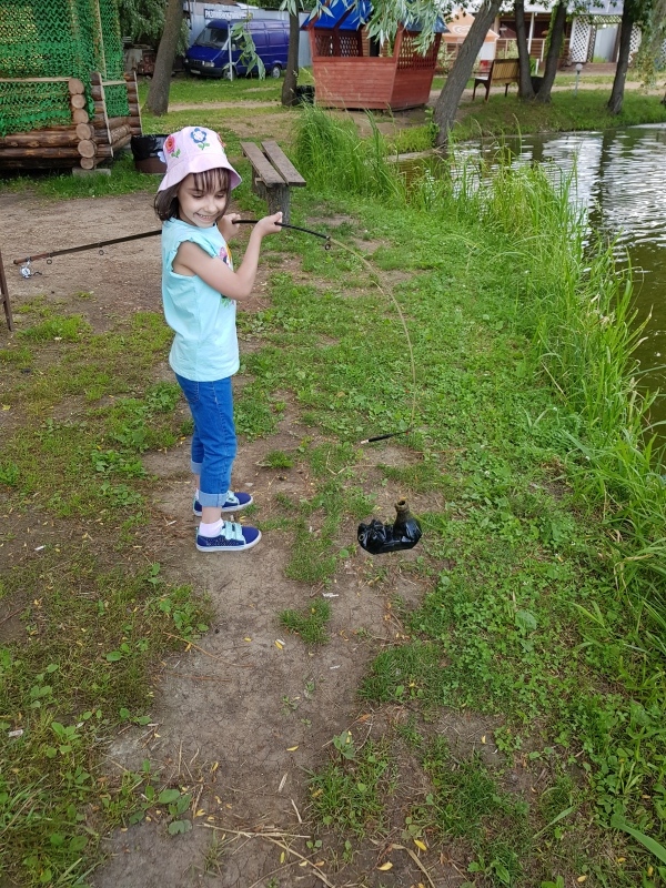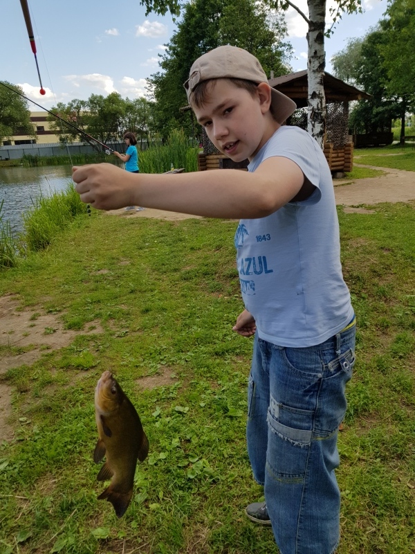 Практически весь день у нас ушел на то, чтобы: 1) научиться надевать червяка на крючок; 2) закидывать удочку; 3) терпеливо ждать, не мотая поплавком по воде туда-сюда и не вынимая постоянно крючок из воды. И это произошло! Для дебютантов - рыбаков у нас был, можно сказать, даже очень хороший улов. Мы поймали несколько штук линя и карася!!!! Счастливые и немного загоревшие, мы возвращались домой с мешочком рыбки. После рыбалки в нашем семействе сразу появилось несколько ее фанатов. Артем, у которого день рождения 22 октября, сказал, что свой день рождения он хочет отметить только рыбной ловлей!!!!