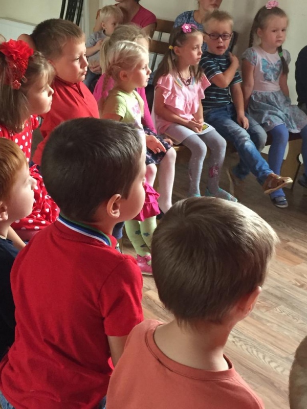 У нас в городе есть храм Архангела Михаила. А при нём действует воскресная школа "Летучий Корабль". Наши старшие дети Рома и Богдана уже ходили в эту школу и им очень нравилось. Занятия идут несколько часов, но пролетают они незаметно - в играх, песнях, сказках, разных занятиях, очень спокойная семейная атмосфера. В этом году мы решили, что пора уже приобщить к воскресной школе Дусеньку и Карину. Дуся побежала с радостью, она у нас очень общительная, быстро выходит на контакт, начинает дружить с другими детьми. А вот Карина, как только оказалась в незнакомом месте, сразу начала реветь. У неё, к сожалению, это часто бывает. Боится, что мы её оставим.... Но, как только Карина понимает, что бояться нечего, тревога проходит. И она со всеми занимается совершенно нормально. После первых занятий, девочки пришли под большим впечатлением, рассказывали, как было здорово и интересно!
