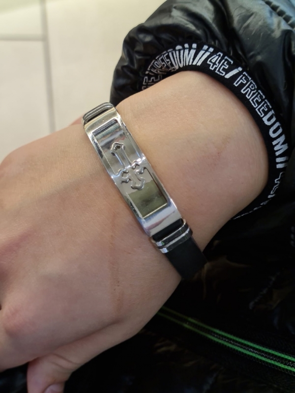 Зашли купить крестик для подопечной девочки на крестины, а Стасик (вот что значит учится в православной школе), попросил купить браслет с крестом, который он у старших мальчиков видел))) Рад и счастлив)))