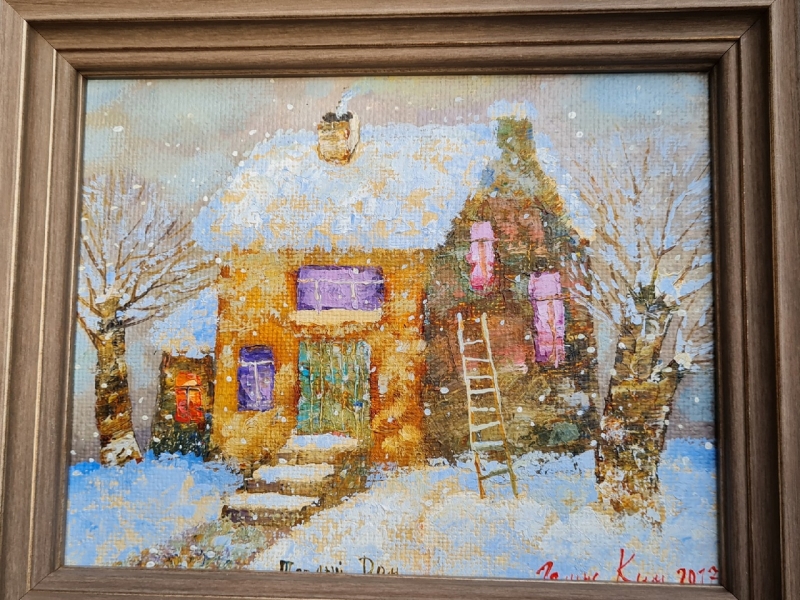 Одна картина Галины Ким продавалась и мы не смогли пройти мимо. Мы решили купить её в честь того, что в этом году подарили пятерым детям тёплый дом. Именно так называется эта картина!